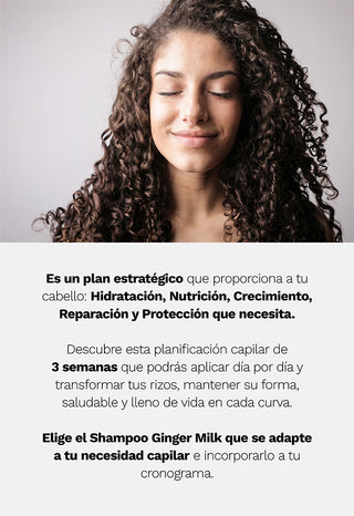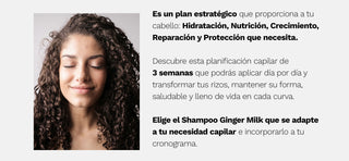 Día de Pre Poo: antes de lavar, aplica evitando las raíces el Aceite Be Yourself + Mascarilla Be Generous + Ampolla Be Generous, dejar actuar por un tiempo mínimo de 20 min. Seguidamente, lava tu cabello con Shampoo Ginger Milk, continúa con la Mascarilla Be Yourself y el Acondicionador Be Honest y lava nuevamente con abundante agua. Aplica la Ampolla Be Powerful en el cuero cabelludo y no enjuagar, finaliza con el Aceite Be Yourself de medios a puntas.