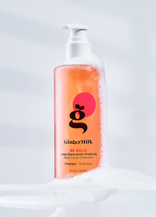 Aplica tu Mascarilla BE BOLD (o la mascarilla Ginger Milk que prefieras), desenreda, enjuaga y seca como de costumbre.