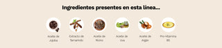 Extracto de Jengibre, Aceite de Jojoba, Extracto de Tamarindo, Vitamina E, Extracto de Aceite de Oliva, Aceite de Ricino Hidrogenado, Apigenina, Ácido Oleanólico, Biotina, Vainilla Hidrolizada, Ácido Cítrico.