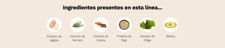 Extracto de Jengibre, Extracto de Romero, Extracto de Canela, Vitamina E, Proteína de Trigo, Procapíl y Biotina