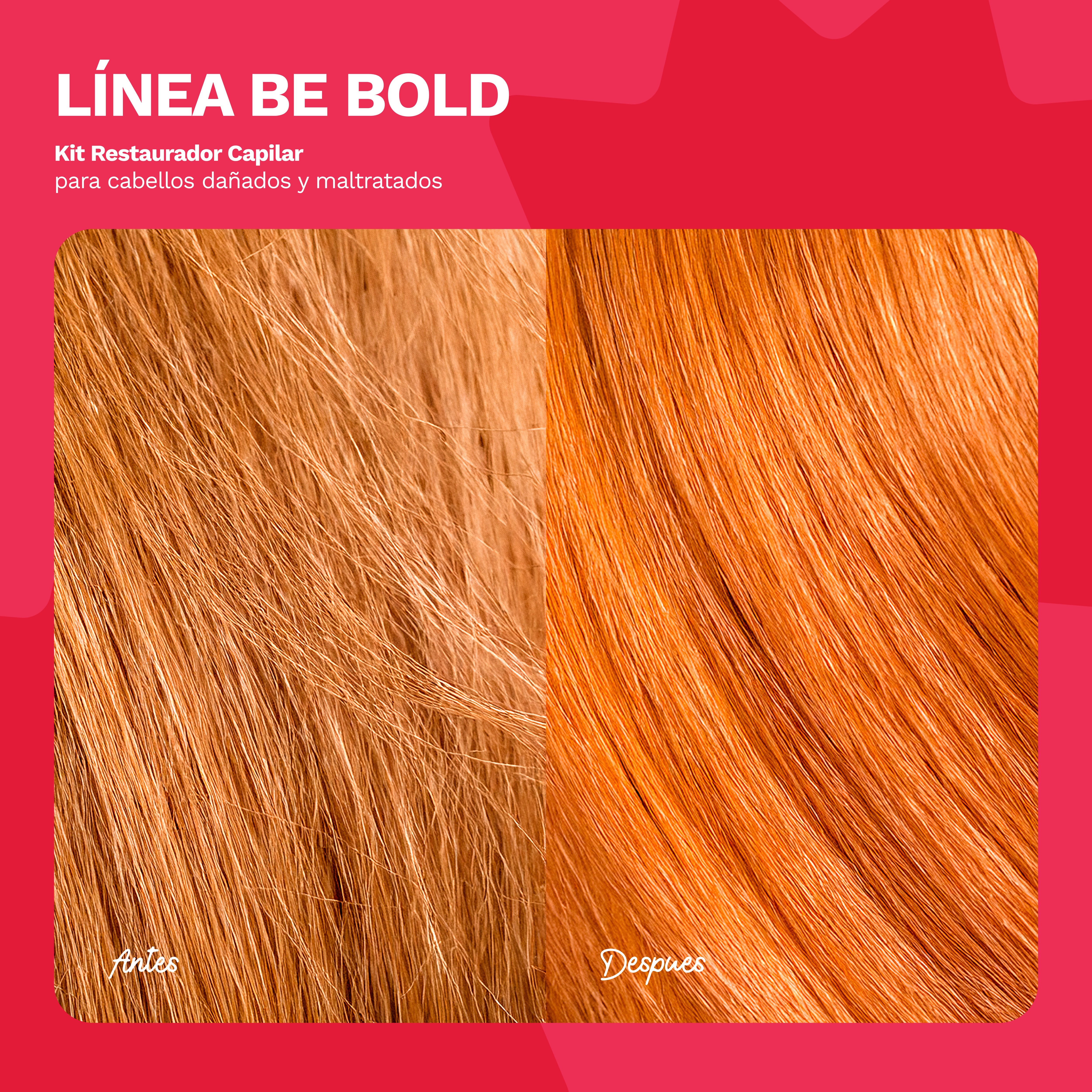 - Con Be Bold, tu cabello pasará de maltratado a fuerte, saludable y lleno de vida.